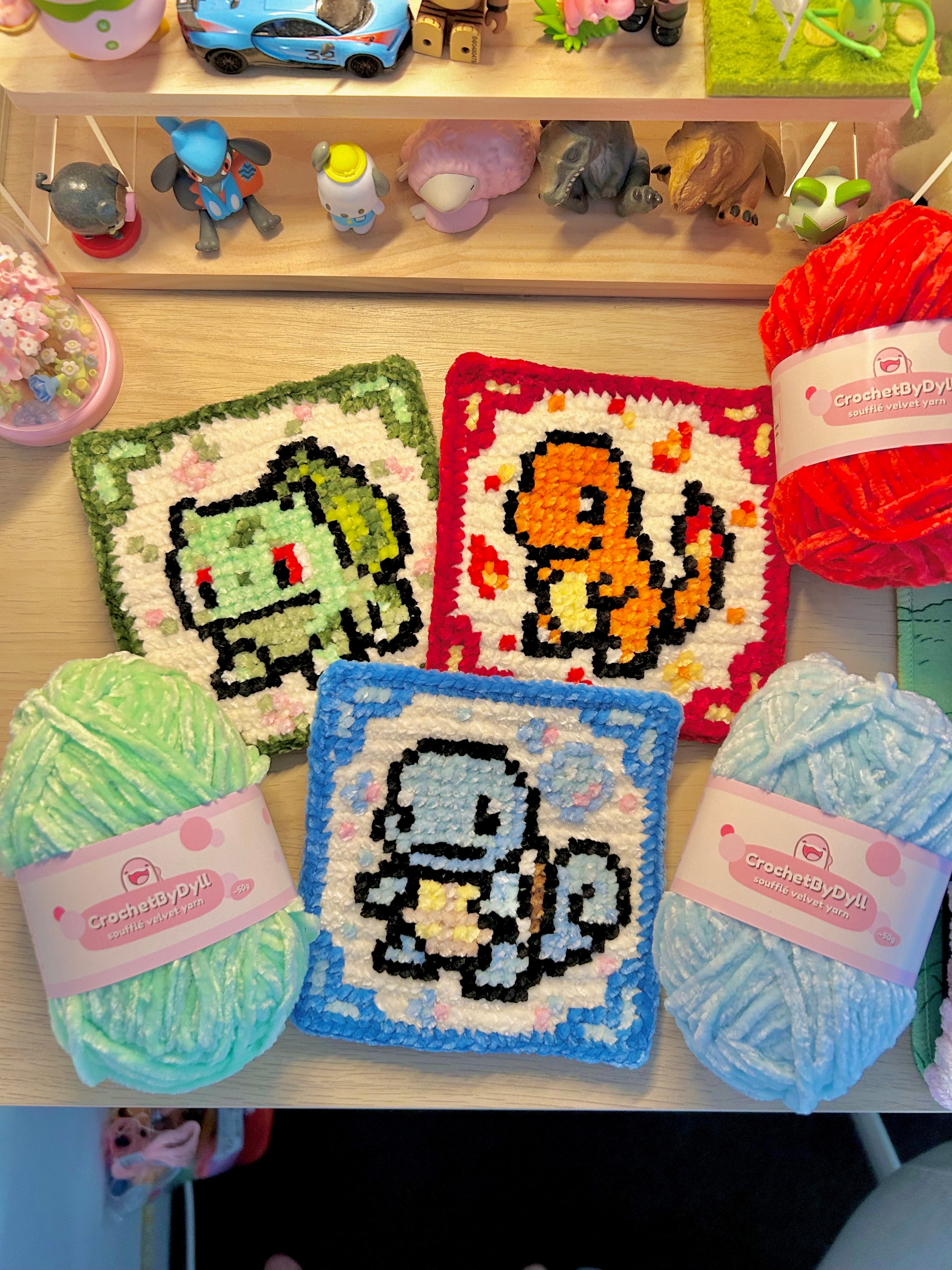 Gen 1 Starter Trio Crochet x Cross-Stitch Pattern Bundle – Bulbasaur, Charmander & Squirtle-Inspired