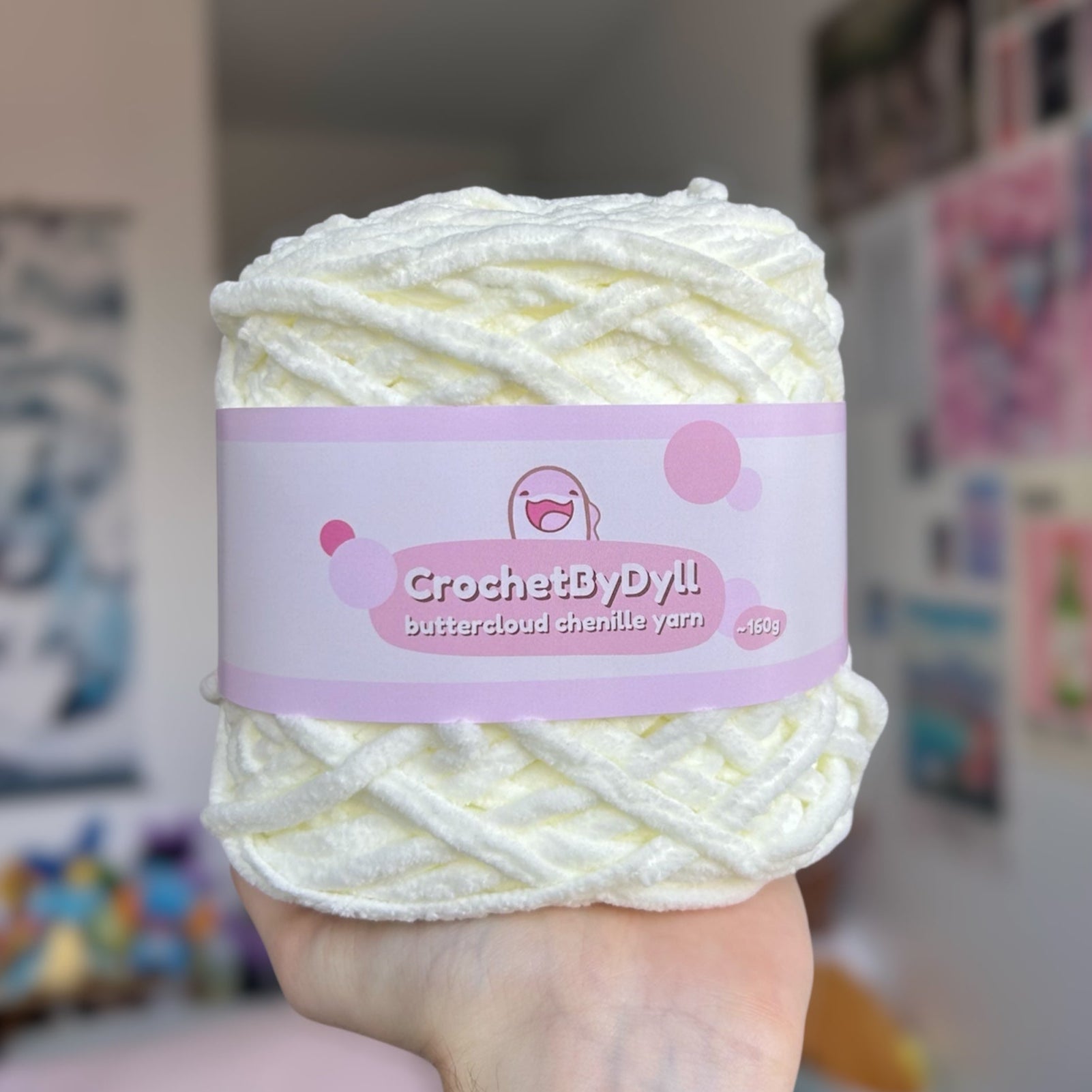 ButterCloud Chenille is our signature plush yarn — soft, velvety, and easy to work with. It glides through your fingers and works up into cosy, cloud-like projects. Great for plushies, blankets, scarves, or anything soft and snuggly 💖