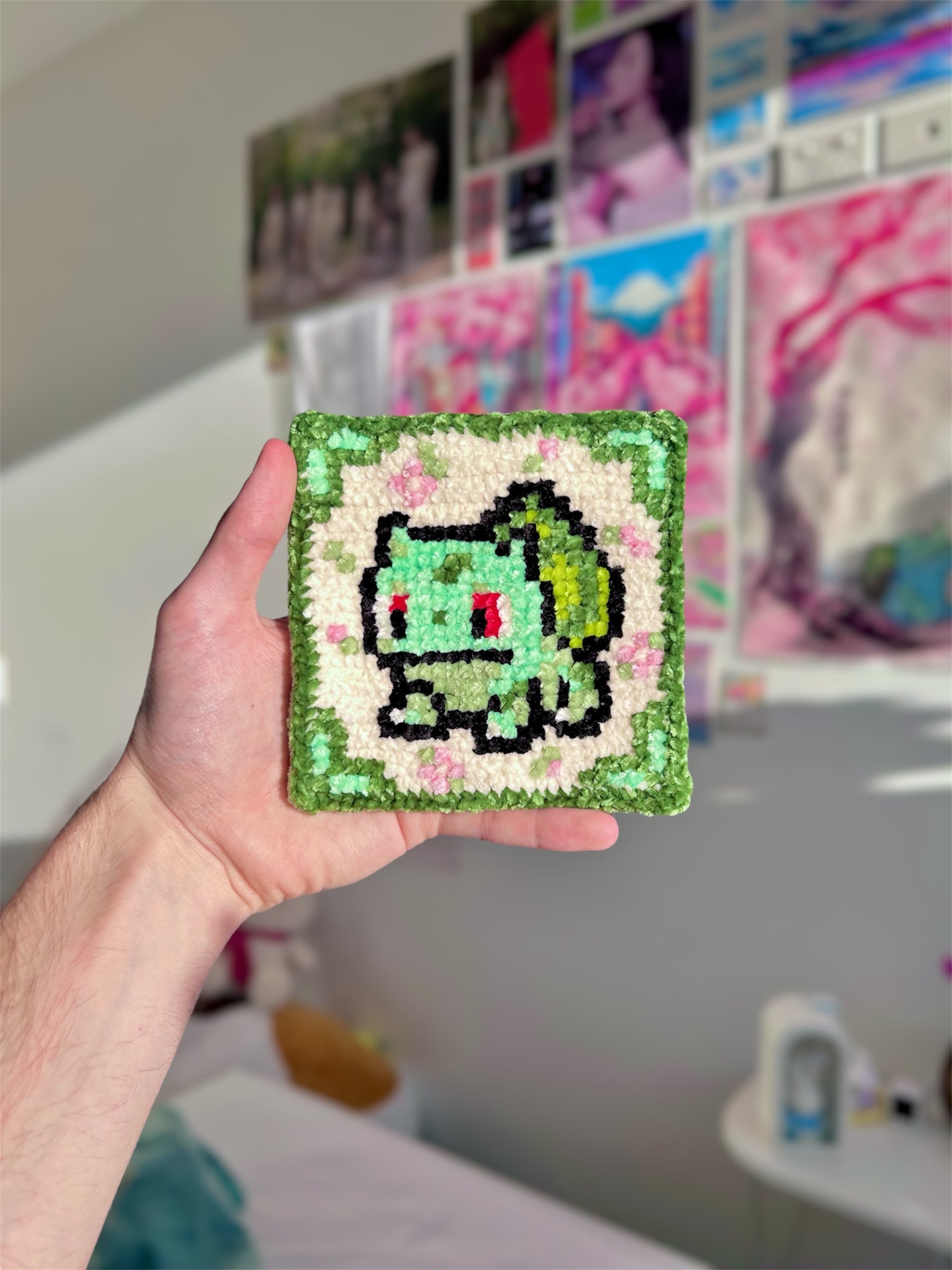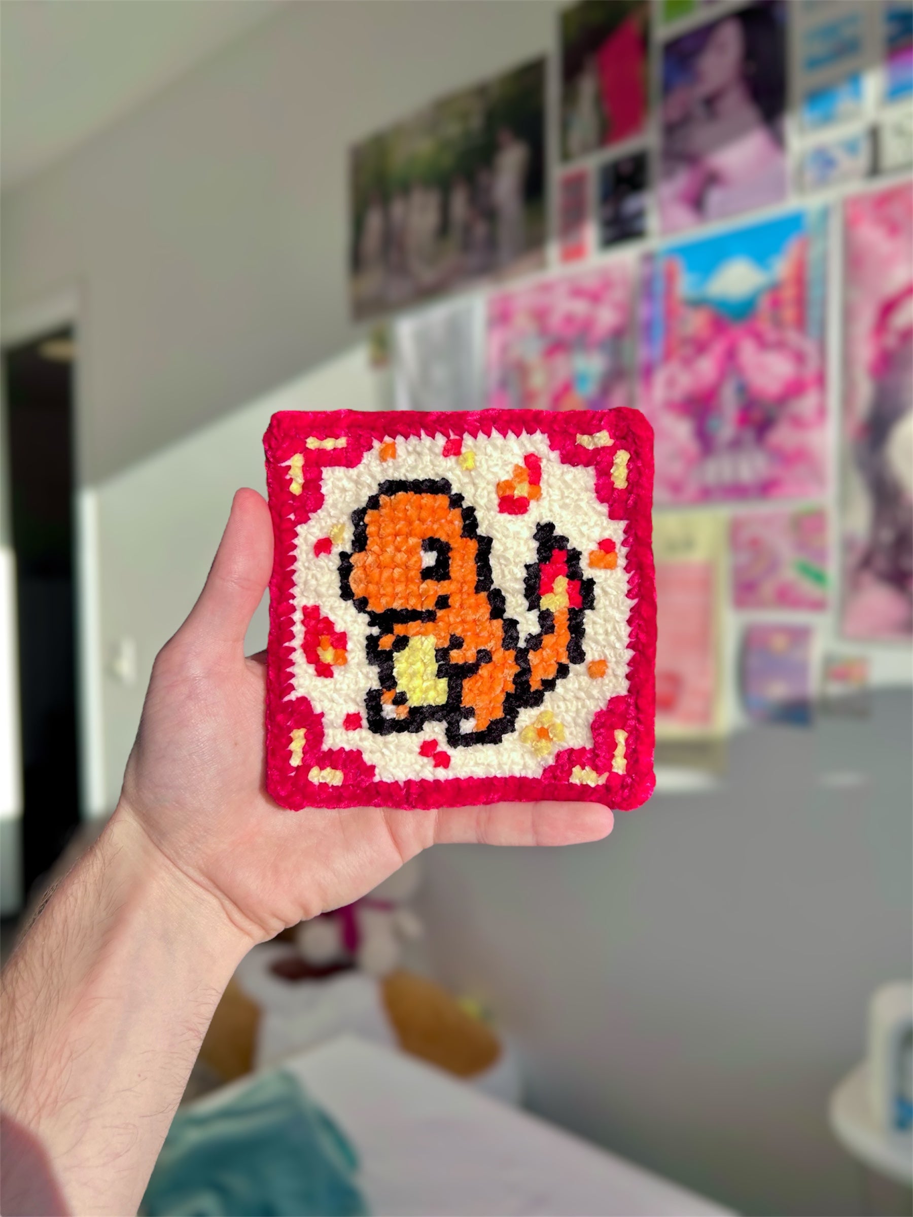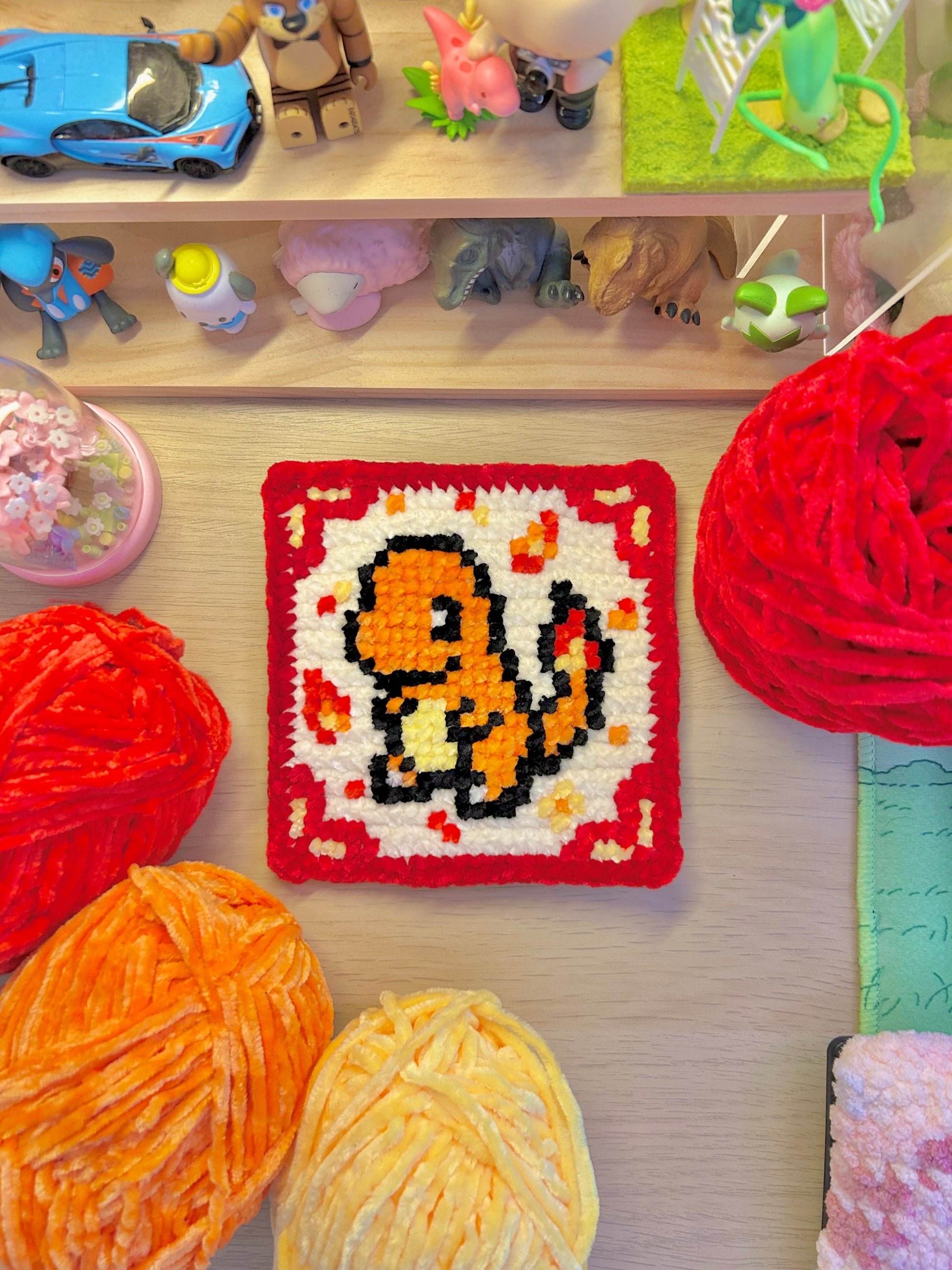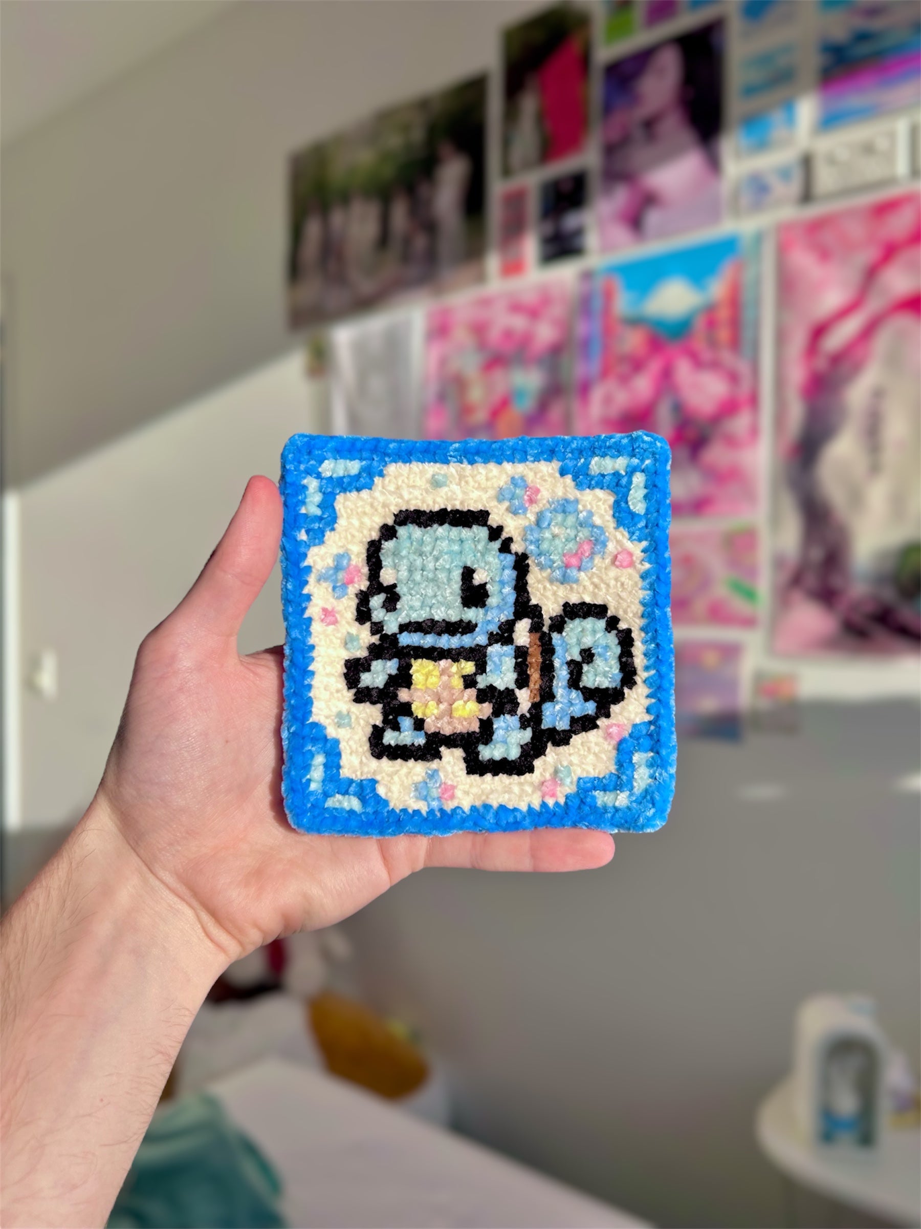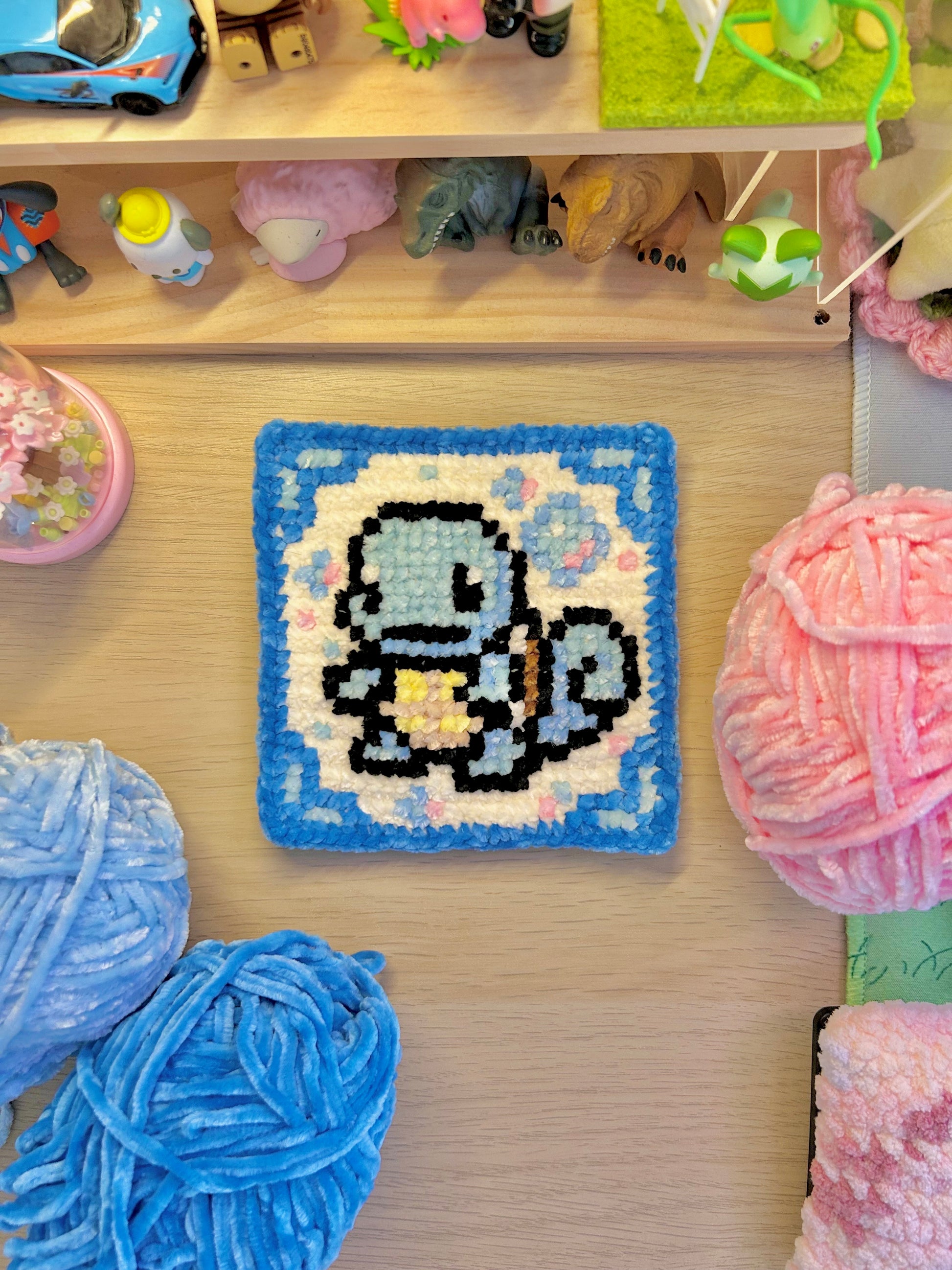 - Squirtle, Bulbasaur and Charmander-inspired cross-stitch designs