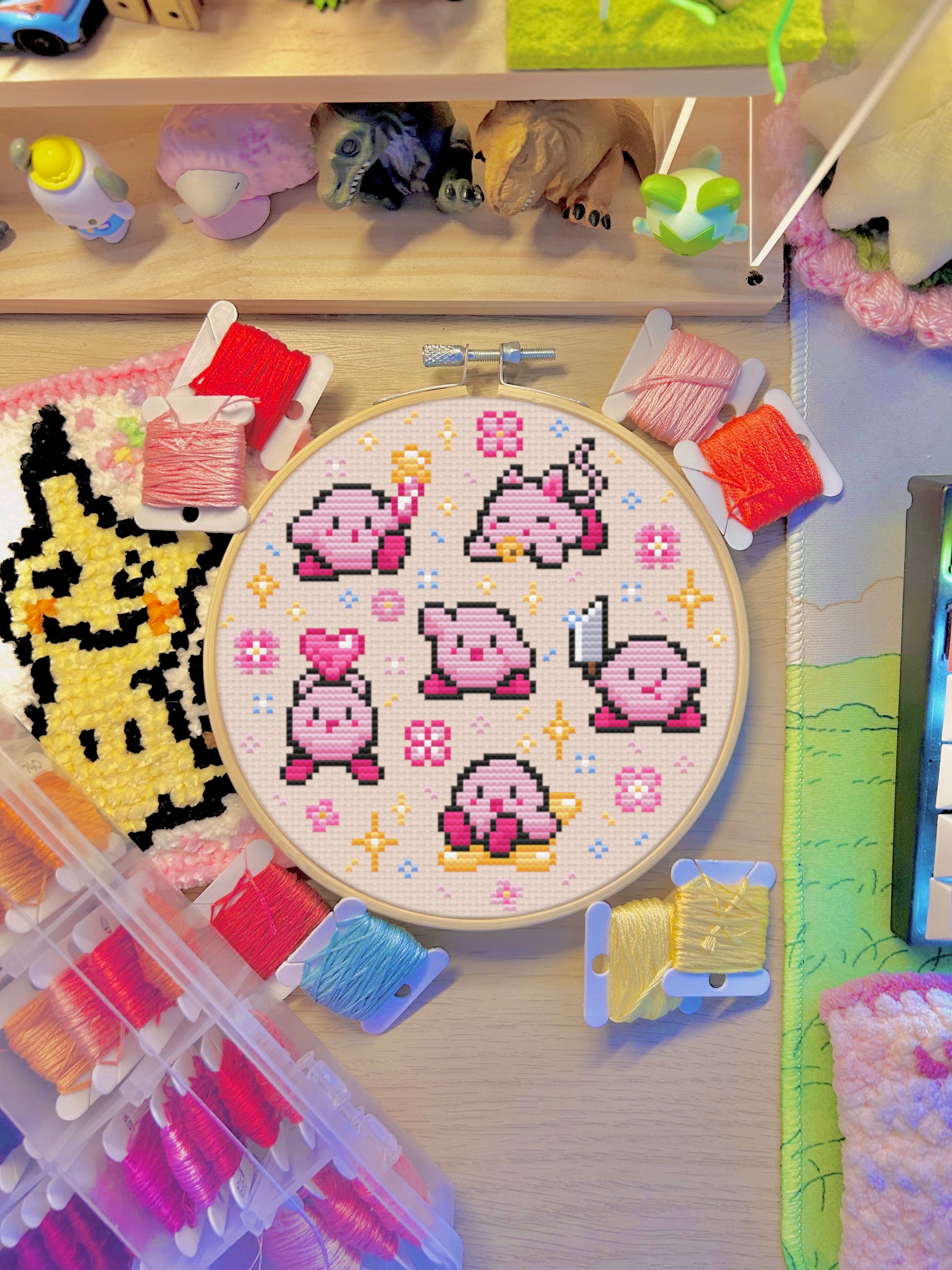 🌸 Soft pinks, sweet vibes, and a familiar round friend - this sakura Kirby-inspired cross stitch pattern is a gentle nod to spring and everything pink. A calm and cheerful project for fans of pastel palettes, wholesome games, and taking a break from gaming to craft instead <3