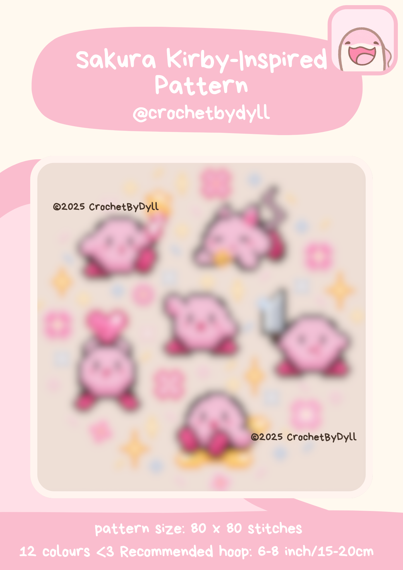 Sakura Kirby-Inspired Cross Stitch Pattern - Cosy Pastel Pixel Design