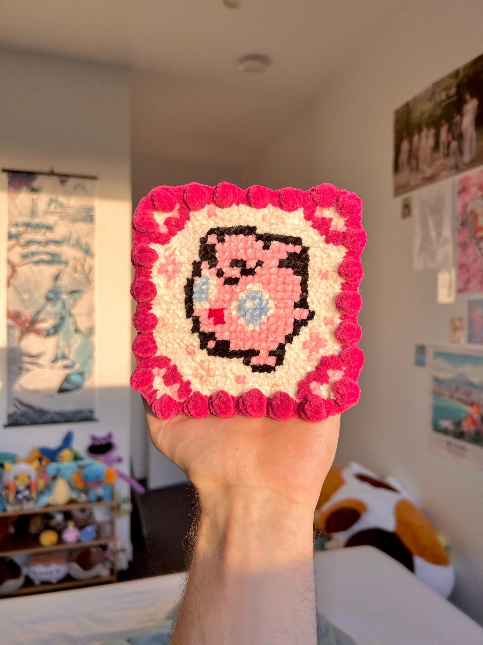 Pink Puff-Inspired Crochet & Cross Stitch Coaster Pattern – PDF Digital Download