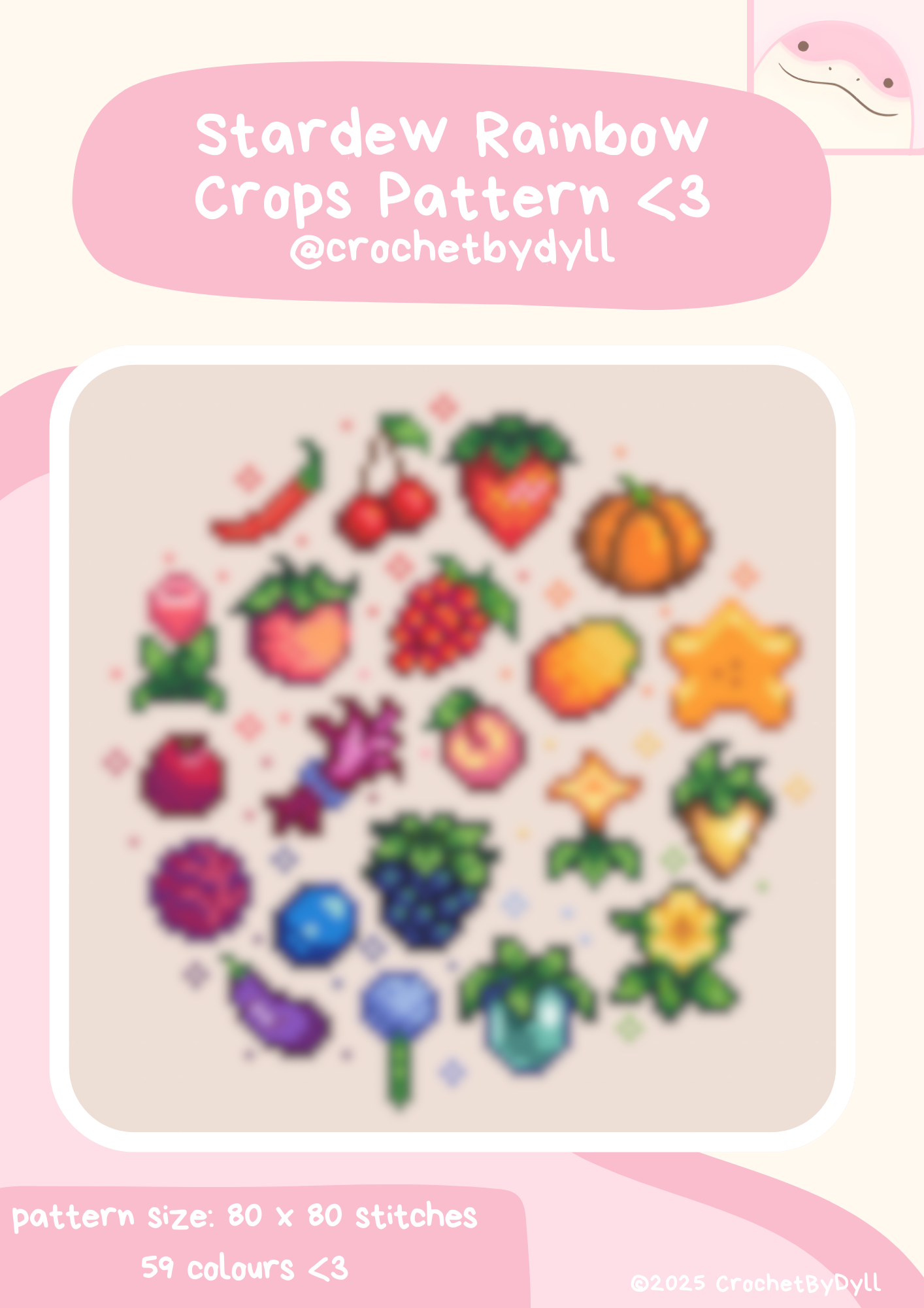 ๐ ๐ Bring a burst of Stardew Valley colour into your stitching! This bright and cheerful cross-stitch pattern features a rainbow gradient made up of 22 fruits, flowers, and crops from the game. A fun and vibrant project to stitch for anyone who loves cosy gaming and a little splash of colour! ๐ ๐ป